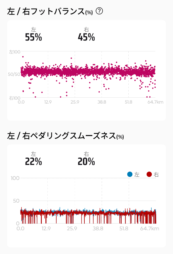 気づいたら、フットバランスやペダリングスムーズネスという項目が見られるようになってました。